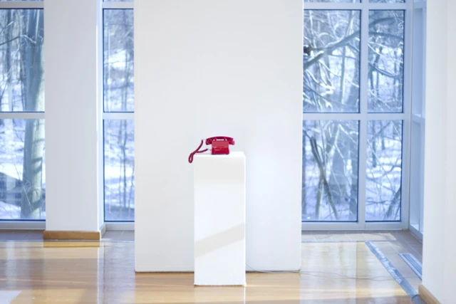 What interests us about this performative gesture is that it requires the user to complete their experience of the work, though this requirement activates a kind of absurdity in the interaction. It questions the nature of technological mediation, and general interactivity in our contemporary experience. The red phone, in a popular notion, is a phone that is used only rarely. And yet here it is, silent and waiting. Does the user overcome the anxiety of the unknown to try, or wait and watch others for clues? How does it feel to perform the action? Does one have the right to initiate the call? What would one say?