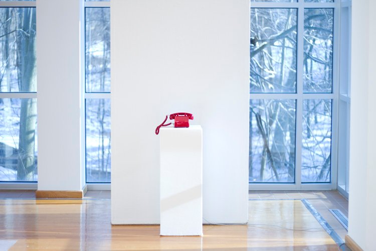 In Hotline, Penrose/Bontrager installed a red telephone in a gallery. The phone was alone, solitary, dominating its environment with the connotative memes of authority. The phone sits atop a single white pedestal as it fills the clean space, begging for interaction. The red phone functioned as an interface between the user and an automated dialing system that dialed The White House. The user will not reach the President, but rather the outermost ring of institutional buffers that keep the user as distant as possible. We intended for this situation to activate a kind of discontinuity between hope and disappointment, intentionality and inevitability.