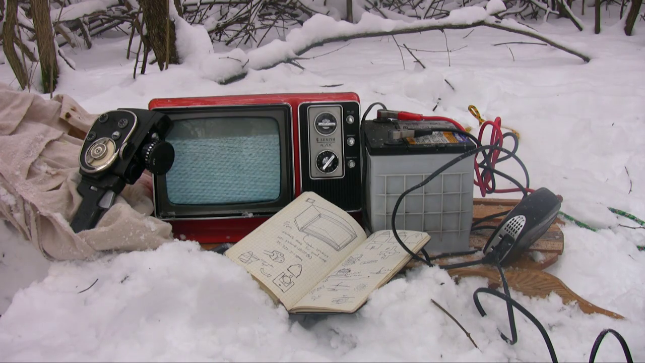 Pictured in the final scene is a car battery pulled from the vehicle I drove to the filming location. It was my only way home, so I had to be careful to not run the television too long.